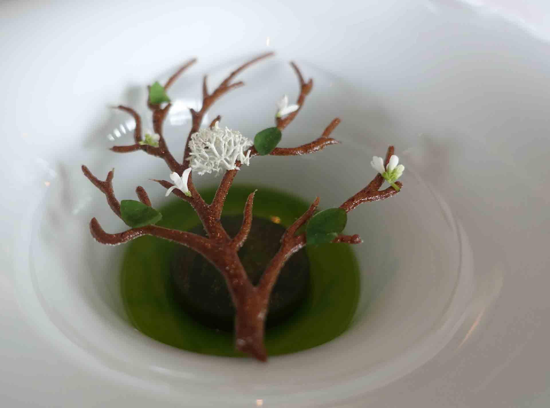 Каждое блюдо — шедевр, который срочно хочется сфотографировать, пока на тарелке не растаял «снег» из устриц, не улетела «пыль» из овощей или пока сок из ревеня так артистично дымится в жидком азоте...