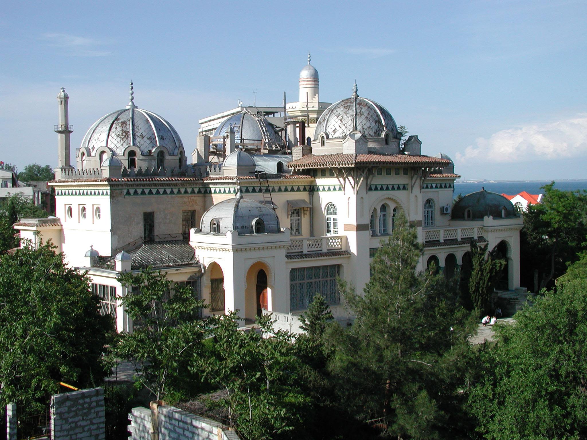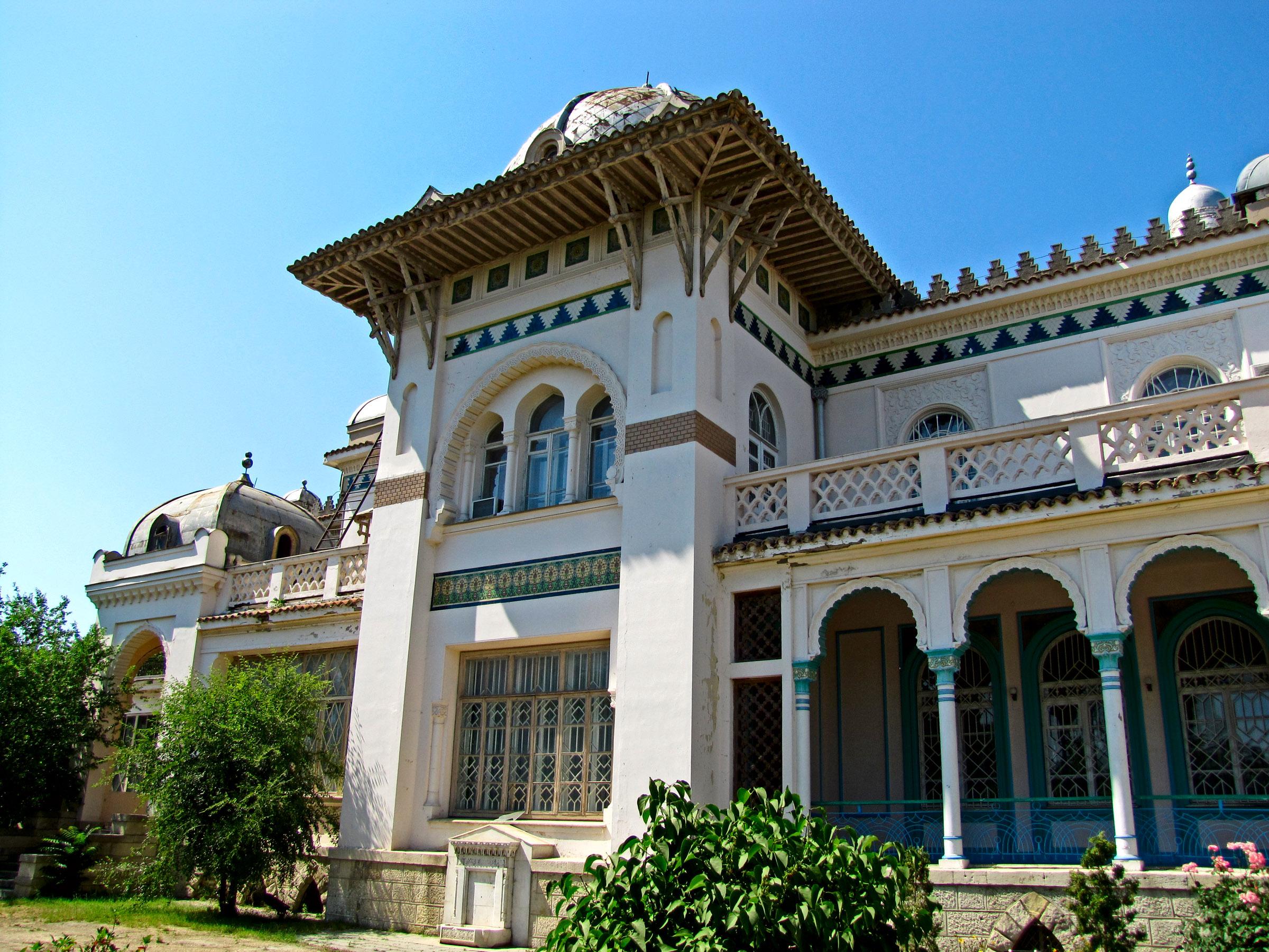 Работа над изящным строением велась пять лет, в результате чего Феодосию украсил дворец в мавританском стиле, декорированный минаретами. Мраморные фонтаны, просторный зимний сад, двор, утопающий в цветах, роспись стен — назвать такое чудо дачей можно лишь с натяжкой.