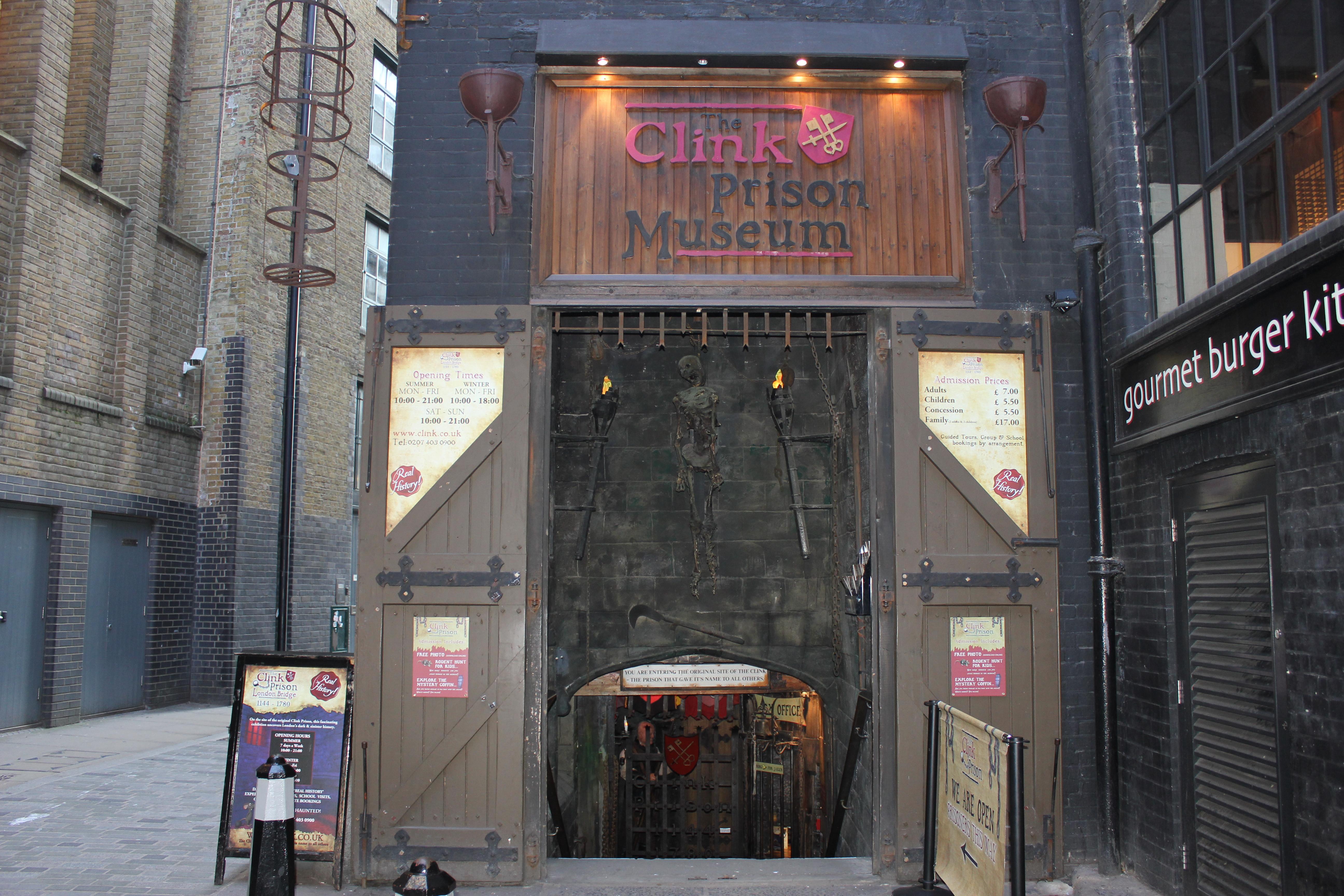 Название «средневековой тюрьмы с самой плохой репутацией», как гласит табличка у входа, произошло от звукоподражания лязгу захлопывающейся двери тюремной камеры. Сегодня в подвалах бывшей тюрьмы организован тематический музей, и любой желающий за 7,5 фунтов может приобрести бесценные знания о лондонских тюремных традициях, ознакомиться с пыточными орудиями и даже, при желании, опробовать их на себе или знакомых. Музей-тюрьма Клинк находится недалеко от побережья Темзы в районе Саутварк.