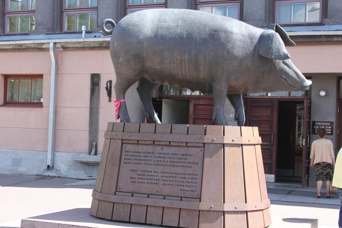 Один из самых оригинальных и в то же время известных памятников Тарту – это изготовленная из бронзы скульптуры свиньи, которая установлена перед главным входом на городской рынок. Эта достопримечательность появилась здесь относительно недавно – в 2008 году, однако она так органично вписалась в общий пейзаж, что сегодня представить рыночную площадь без неё уже довольно трудно.