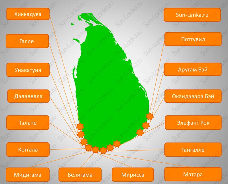 Карта мест для занятий серфингом [Шри-Ланка]
